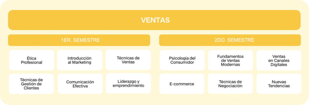 Nuestra carrera de Ventas y Gestión Comercial te forma para convertirte en un profesional capaz de atraer, convertir y fidelizar clientes con estrategias innovadoras que impulsan el crecimiento de cualquier marca. Aprenderás a posicionar productos y servicios, mejorar la experiencia del cliente y liderar procesos comerciales con mentalidad emprendedora, preparándote para destacar en los mercados actuales y crear tus propias oportunidades de éxito.